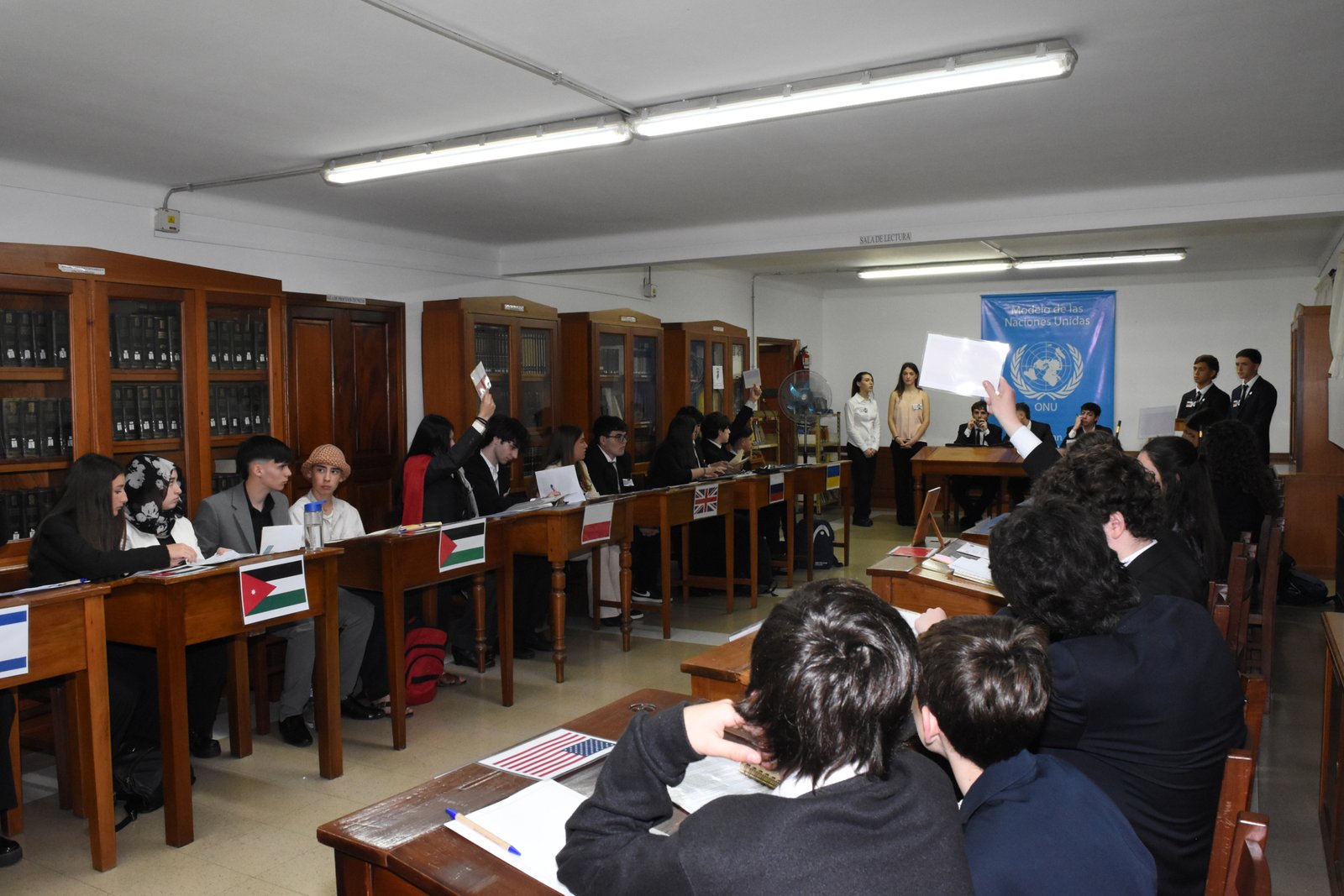Cerca de cien estudiantes maristas participaron activamente de la preparación de sus delegaciones con la guía de sus profesores, formándose en reglas de procedimiento, retórica y oratoria, investigación, argumentación, negociación y consenso conforme al Modelo de Naciones Unidas.